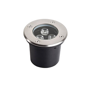 Fam Floor Up light is waterproof IP67 stainless steel 316L in-ground recessed luminaire fixed directional with round cover plate and clear glass. In-ground luminary to be place inside or outside. This fixture is resistant to high pressures, up to 2500 KG on certain models. Extremely robust construction, this spot can use an LED with a fix or adjustable lamp holder. This quality luminary is manufactured by machining process. The body is in anodized aluminum and the cover plate is stainless steel 316L.
